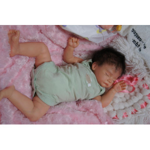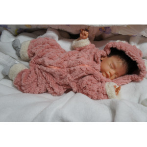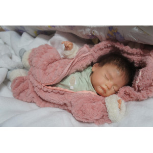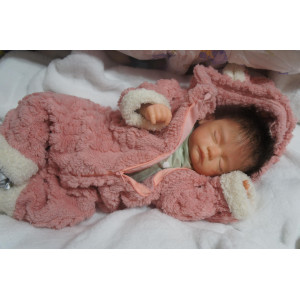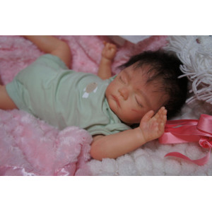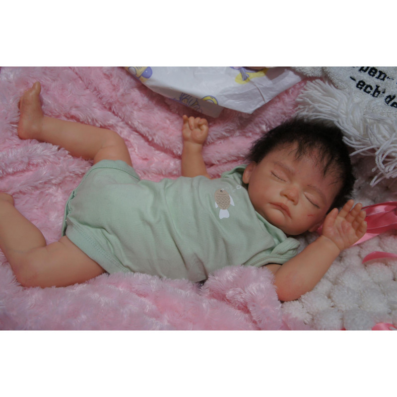 Ich wurde mit hochwertigen Farben in Real Effekt Technik eingefärbt. Mit Genesis Farben habe ich dieses alles noch mal zum Schluss gut versiegelt und eingebrannt. Diese wurde in mehreren Schichten aufgetragen, sodass ein sehr realistisches Hautbild entstanden ist. (Wisch- und Wasserfest kein Abblättern mgl). Feinste Schattierungen und leichte Betonung der Speckfalten wurden bei mir auch nicht vergessen. Leichte Äderchen an Händen, Armen, Füßchen, Beinen, Ohren, Kopf und Gesicht lassen mich wie ein echtes Baby aussehen. Jedes Fältchen an mir wurde einzeln betont. Zarte Augenbrauen wurden mir auch gegeben. Meine Nase wurde geöffnet und hinterlegt, sodass ich jetzt auch gut Luft bekomme. Auch zarte Befeuchtung der Augen, Mund und Nase lassen mich noch echter wirken.