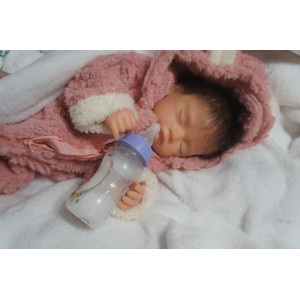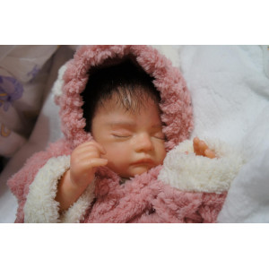 Meine Haare sind dunkelbraun und im micro Rooting Verfahren einzeln eingepflanzt (Feinstes Mohair ). Anschließend natürlich von innen versiegelt. Und nun kann man meine Haare kämmen und auch mal leicht waschen. Die passenden Wimpern habe ich auch dazu gerootet bekommen, das sieht jetzt richtig echt aus. Meine Finger- und Fußnägel wurden fein Pedi- und Manikürt und anschließend dauerhaft versiegelt. Zum Schluss bekam ich noch einen Magnetschnuller. Und ein Duftöl aufgetragen, jetzt riech ich auch noch wie ein echtes Baby.