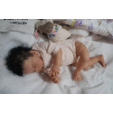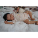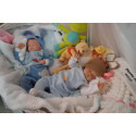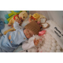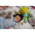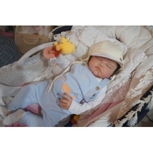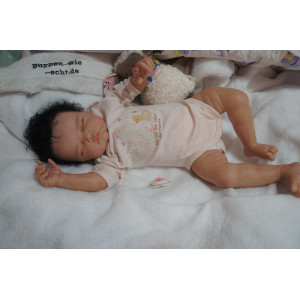 Ich wurde mit hochwertigen Farben in Real Effekt Technik eingefärbt. Mit Genesis Farben habe ich dieses alles noch mal zum Schluss gut versiegelt und eingebrannt. Diese wurde in mehreren Schichten aufgetragen, sodass ein sehr realistisches Hautbild entstanden ist. (Wisch- und Wasserfest kein Abblättern mgl). Feinste Schattierungen und leichte Betonung der Speckfalten wurden bei mir auch nicht vergessen. Leichte Äderchen an Händen, Armen, Füßchen, Beinen, Ohren, Kopf und Gesicht lassen mich wie ein echtes Baby aussehen. Jedes Fältchen an mir wurde einzeln betont. Zarte Augenbrauen wurden mir auch gegeben. Meine Nase wurde geöffnet und hinterlegt, sodass ich jetzt auch gut Luft bekomme. Auch zarte Befeuchtung der Augen, Mund und Nase lassen mich noch echter wirken.